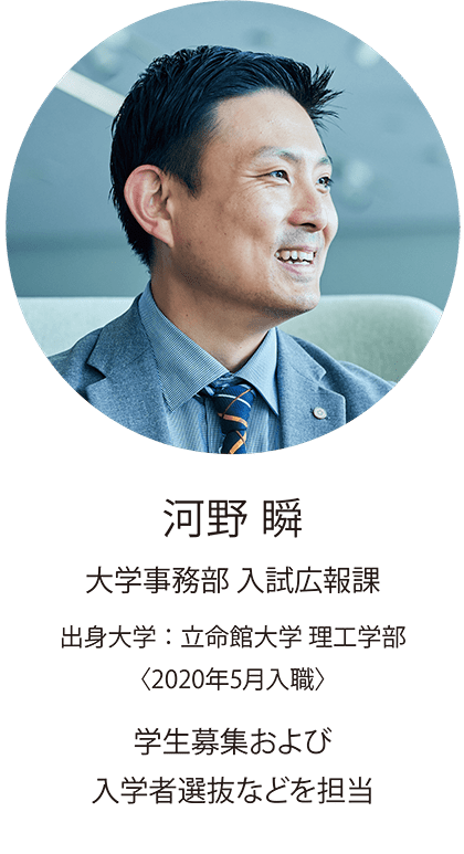 私も、学生時代に学友会活動や課外活動を通して、様々な部署の職員の方にお世話になったので、「大学職員」という職業は身近に感じていました。学生時代の経験から、学生生活をサポートする仕事に魅力を感じ、就職を決めました。